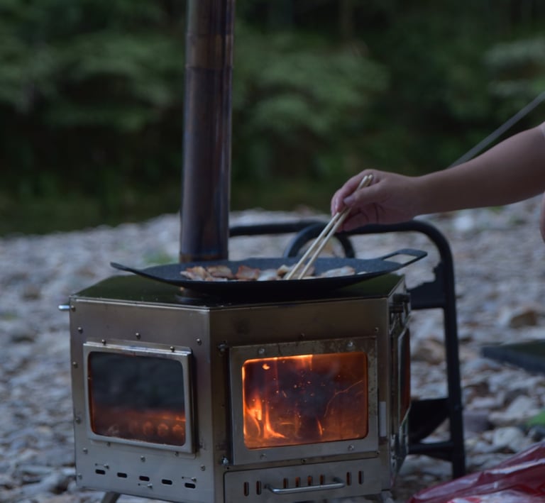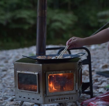 The stove warmed our chilly mountain night perfectly—heartfuego made camping cozy!